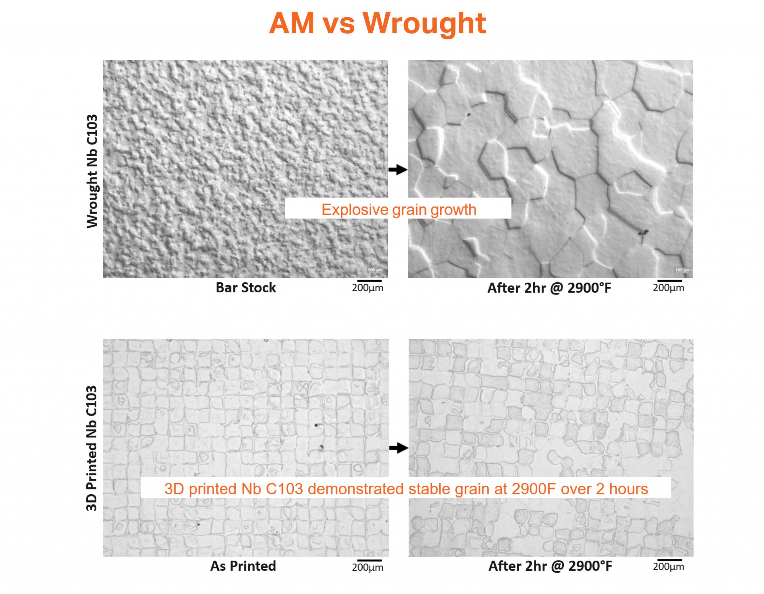 Castheon’s 3D-printed Niobium C103 surpasses traditional wrought materials by leveraging key improvements through precise control of rapid solidification in the LPBF process. This method ensures the metal’s integrity even under extreme conditions, enhancing grain boundary properties crucial for material performance. Additionally, the LPBF process allows for the creation of stable oxide and carbide structures, enhancing its strength. The material’s compatibility with welding and brazing expands its fabricability. Proven through extensive third-party testing and successful space flight missions, Castheon’s 3D-printed Niobium C103 stands as a superior choice, excelling in critical aspects over wrought materials.